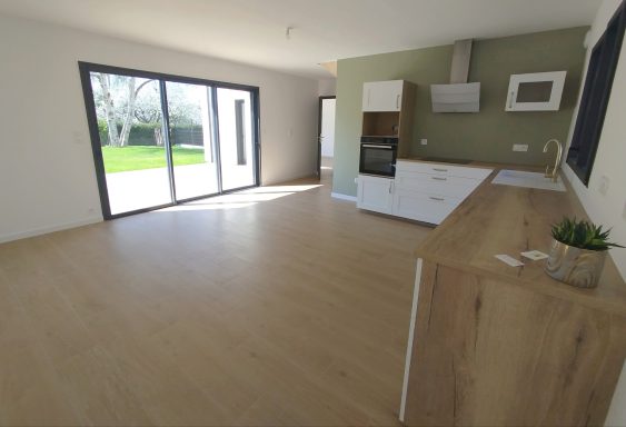 Environ 100 m², normes RE2020, chauffage au sol, garage , jardin clos et paysager, commerces à proximité, accessibilité PMR, assurance Dommage Ouvrage, frais de notaires réduits. Terrain 361 m²