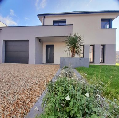 Environ 100 m², normes RE2020, chauffage au sol, garage , jardin clos et paysager, commerces à proximité, accessibilité PMR, assurance Dommage Ouvrage, frais de notaires réduits. Terrain 361 m²